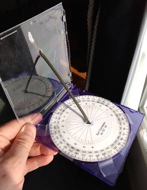 A deviation card is something every navigational text states we all need...but none of us have one. It is just too difficult to create. But a sun compass is an easy-to-use tool that makes the construction of a deviation card realistic. Considering the fast movement of the North magnetic pole and the desire to scrap daylight saving time, this will be an interesting meeting. |